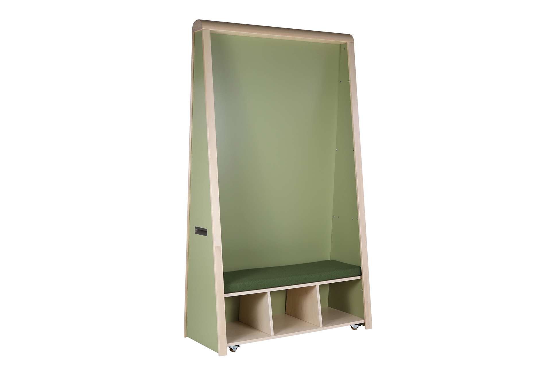 Päiväkotikäyttöön suunnitellun tilanjakajan muotoilu houkuttelee lapsia tutkimaan, leikkimään ja oivaltamaan. Mielikuvituksellinen ja lapsilähtöinen design tukee luovaa leikkiä ja tarjoaa samalla arjen toiminnallisuutta.