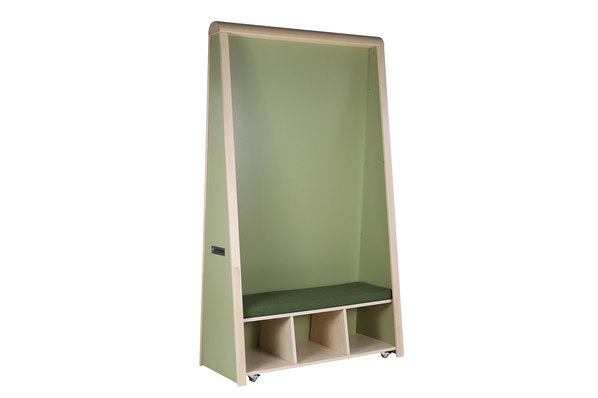 Päiväkotikäyttöön suunniteltu A-sermi luo tilaan rauhaa ja järjestystä, mutta samalla se avaa loputtomasti mahdollisuuksia luovaan leikkiin ja yhteiseen tekemiseen. Se mukautuu tilan ja toiminnan tarpeisiin – tänään majaksi, huomenna oppimisen tukipisteeksi.
