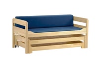 Muksu-sohvakokonaisuus tarjoaa nukkumapaikat jopa kolmelle lapselle. Kun käytössä on pelkkä sohva, alavuoteet saa työnnettyä kätevästi sohvan alle.